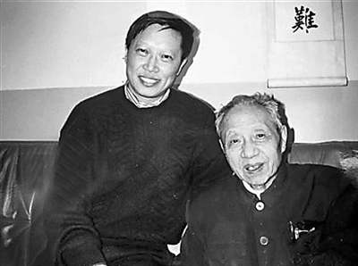 图2:沈津与古籍版本目录学家顾廷龙(右)。(资料图片)