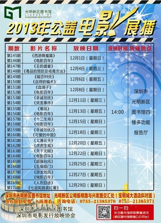 新区图书馆十一月份公益电影展播